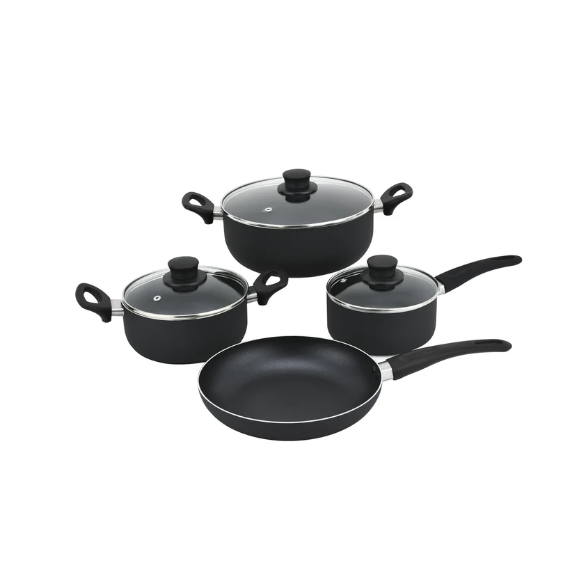 La Batería Rock está diseñada para facilitar tu vida en la cocina. Cuenta con un recubrimiento antiadherente de teflón que evita que los alimentos se peguen, facilitando la limpieza. Además, es apta para lavavajillas, lo que te permite ahorrar tiempo y esfuerzo. Su material de aluminio permite una distribución uniforme del calor, asegurando una cocción pareja de tus alimentos. El color negro le da un toque elegante a tu cocina.