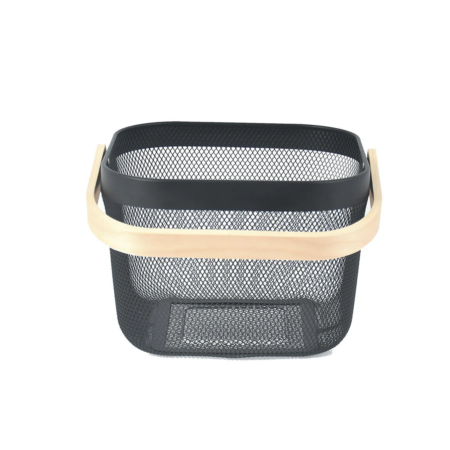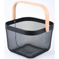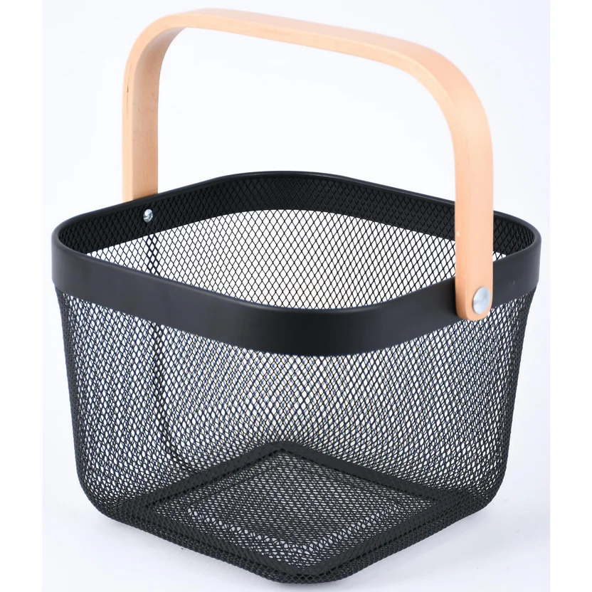 Canasta metálica negra mango de madera