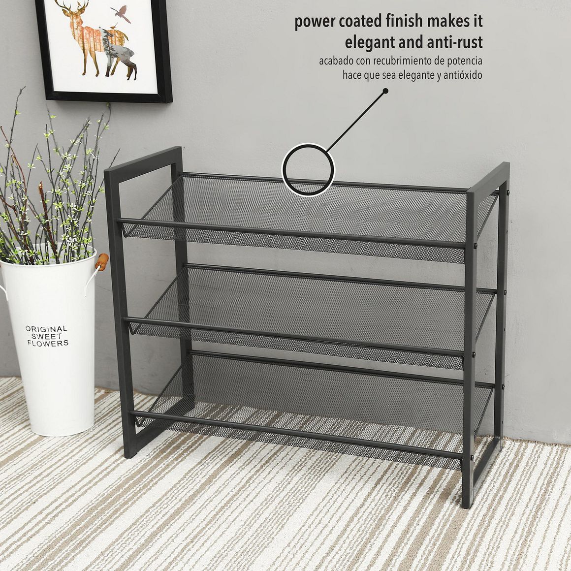 Organiza tus zapatos de forma práctica y elegante con la zapatera metálica AG Box. Con sus tres repisas, podrás acomodar hasta 15 kg de calzado, manteniendo tu espacio ordenado y libre de desorden. Su diseño moderno y color negro se adapta a cualquier estilo de decoración, y su material metálico le da resistencia y durabilidad. ¡No te preocupes por el espacio, esta zapatera es perfecta para tu estudio u oficina!