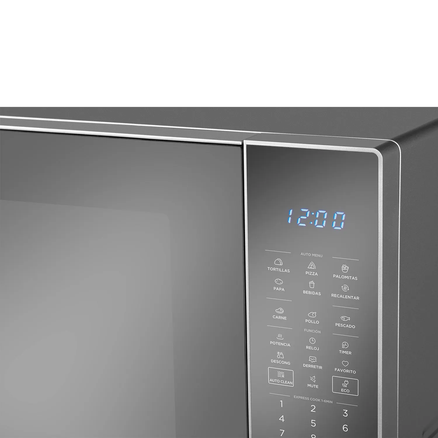 Este horno de microondas cuenta con 10 niveles de potencia para que puedas cocinar tus alimentos a la perfección. Además, su función ECO te permite ahorrar energía al apagar la pantalla cuando no está en uso. Con su puerta de acabado espejo y su panel de control digital con LED verde, este horno de microondas es una excelente opción para cualquier cocina. Su capacidad de 1.4 pies cúbicos te permitirá calentar o cocinar una variedad de alimentos.