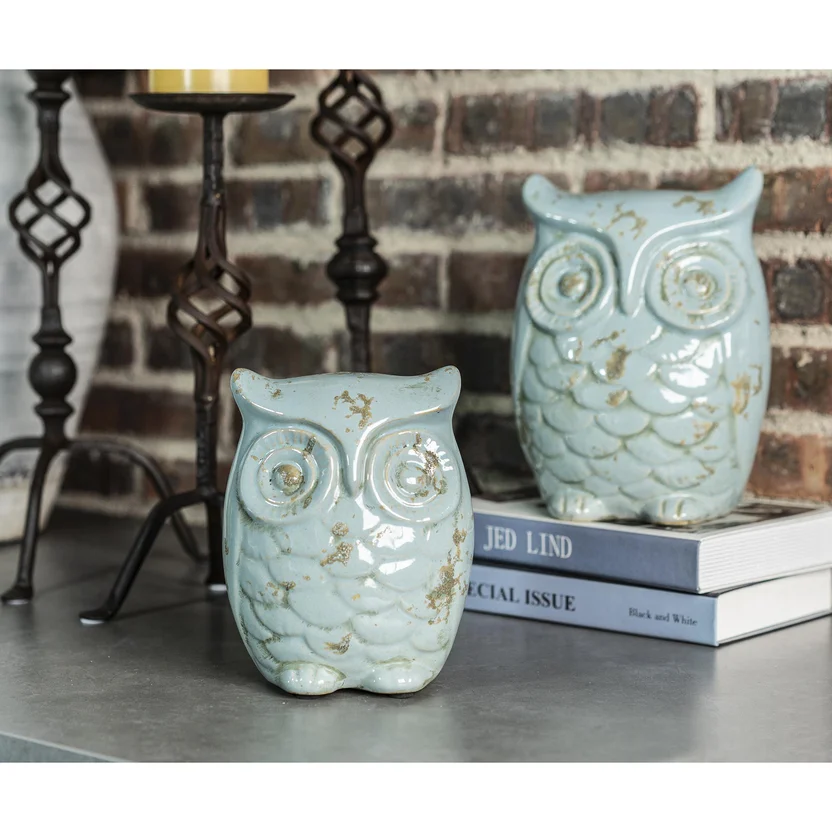 Búho de Decoración Azul 17 x 13 x 22 cm